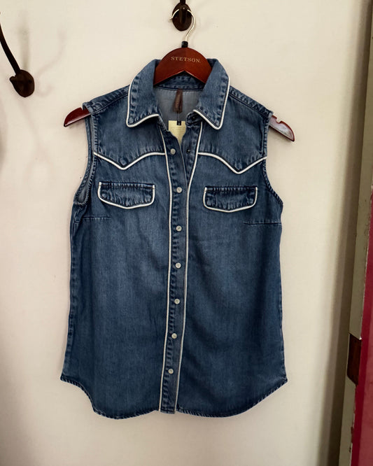 Piped Denim Sleeveless Shirt