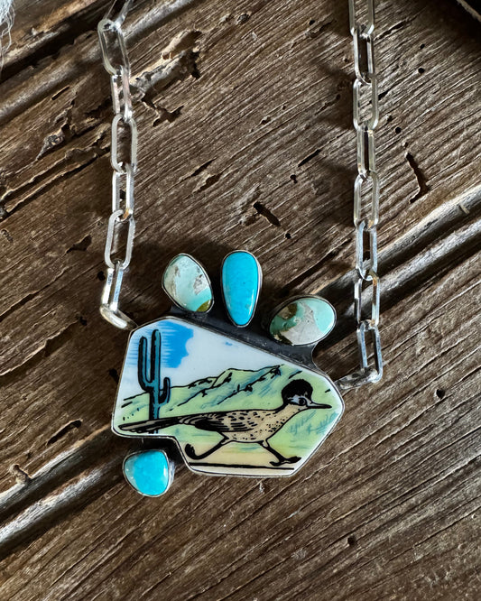 Roadrunner Ceramic & Royston Turquoise Necklace