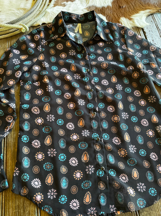 Roper Georgette Concho Print Shirt