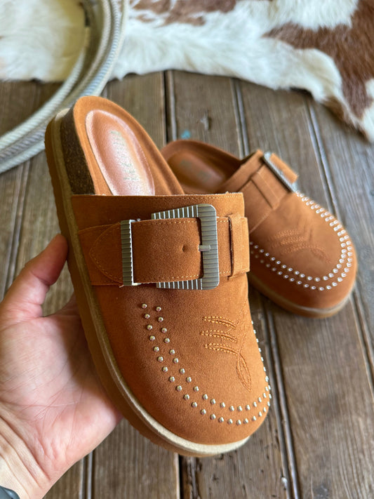 Buckskin Buckle Mules