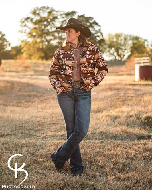 Rio Corduroy Collared Barn Coat (Tan Aztec)