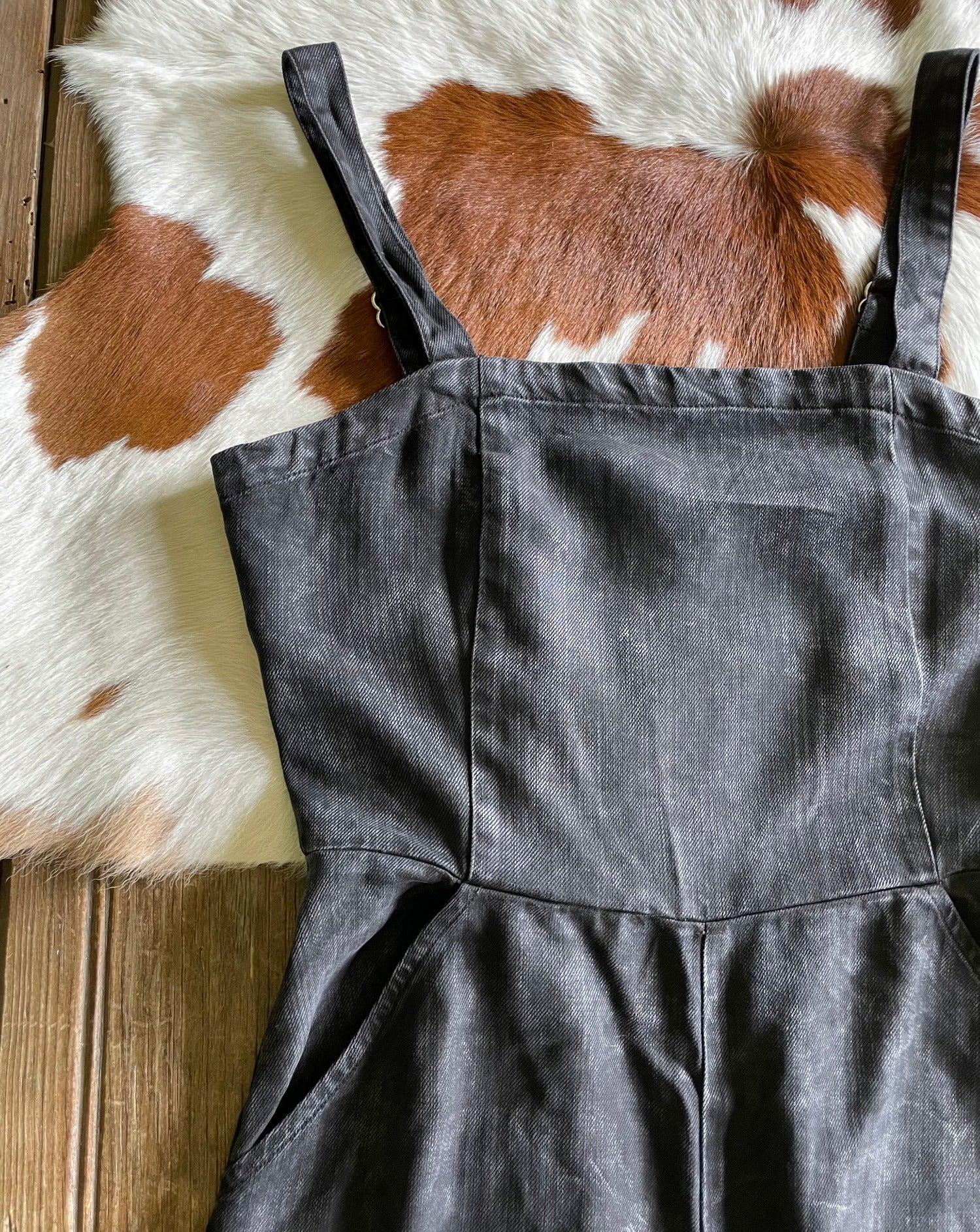 The Benbrook Romper is the perfect combination of comfort and style. The relaxed fit and 55" length give you a flattering and comfortable look, while the 100% Tencel fabric and black mineral wash make you look amazing. Strap in and let the Benbrook Romper take you from day to night!