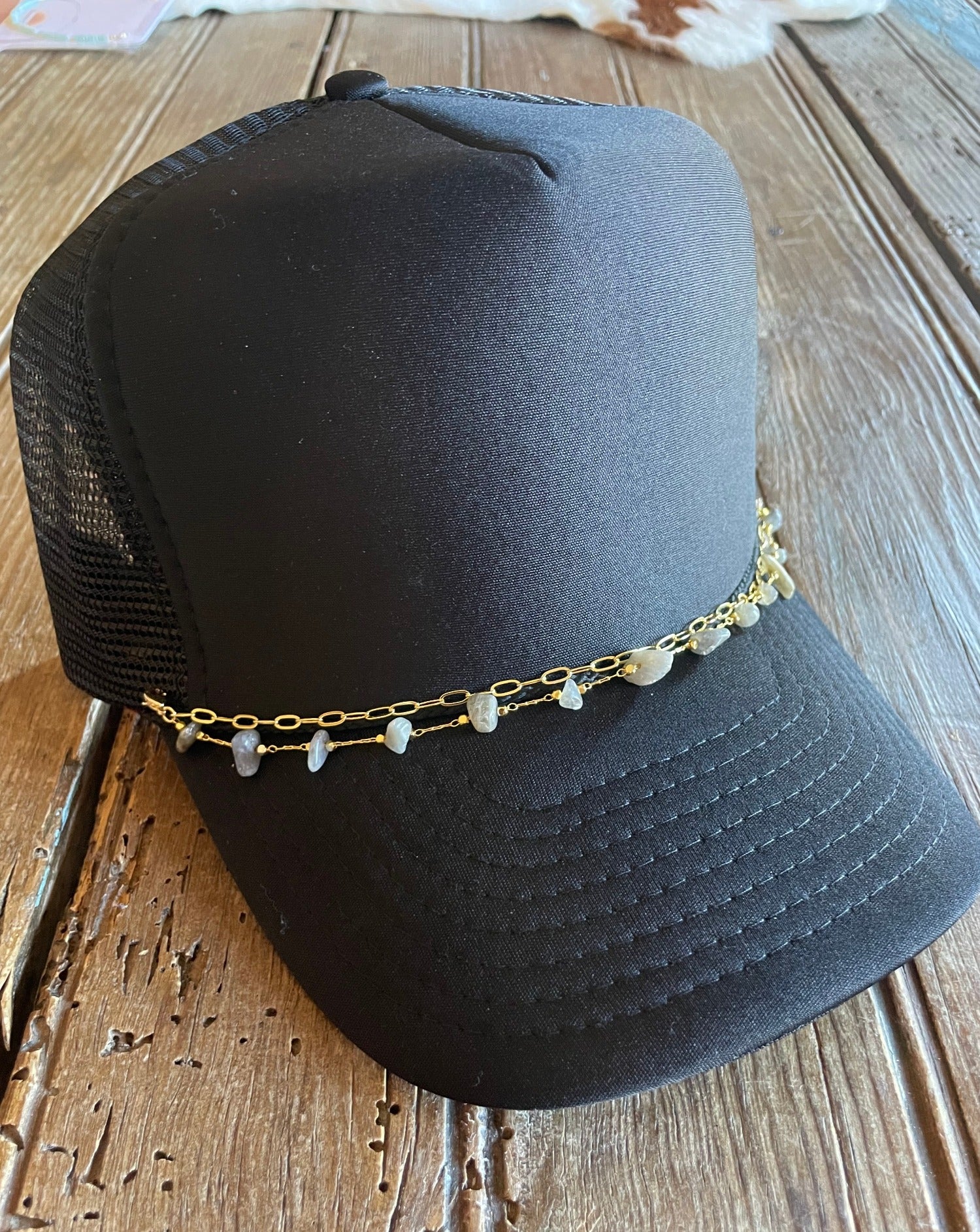 Add a touch of elegance to any outfit with the Labradorite Rain Hat Chain. Featuring stunning Labradorite chip beads and a 14k gold-plated stainless-steel paper clip chain, this 9" long chain will elevate your style. Perfect for any occasion, it's a must-have for fashion-forward individuals.