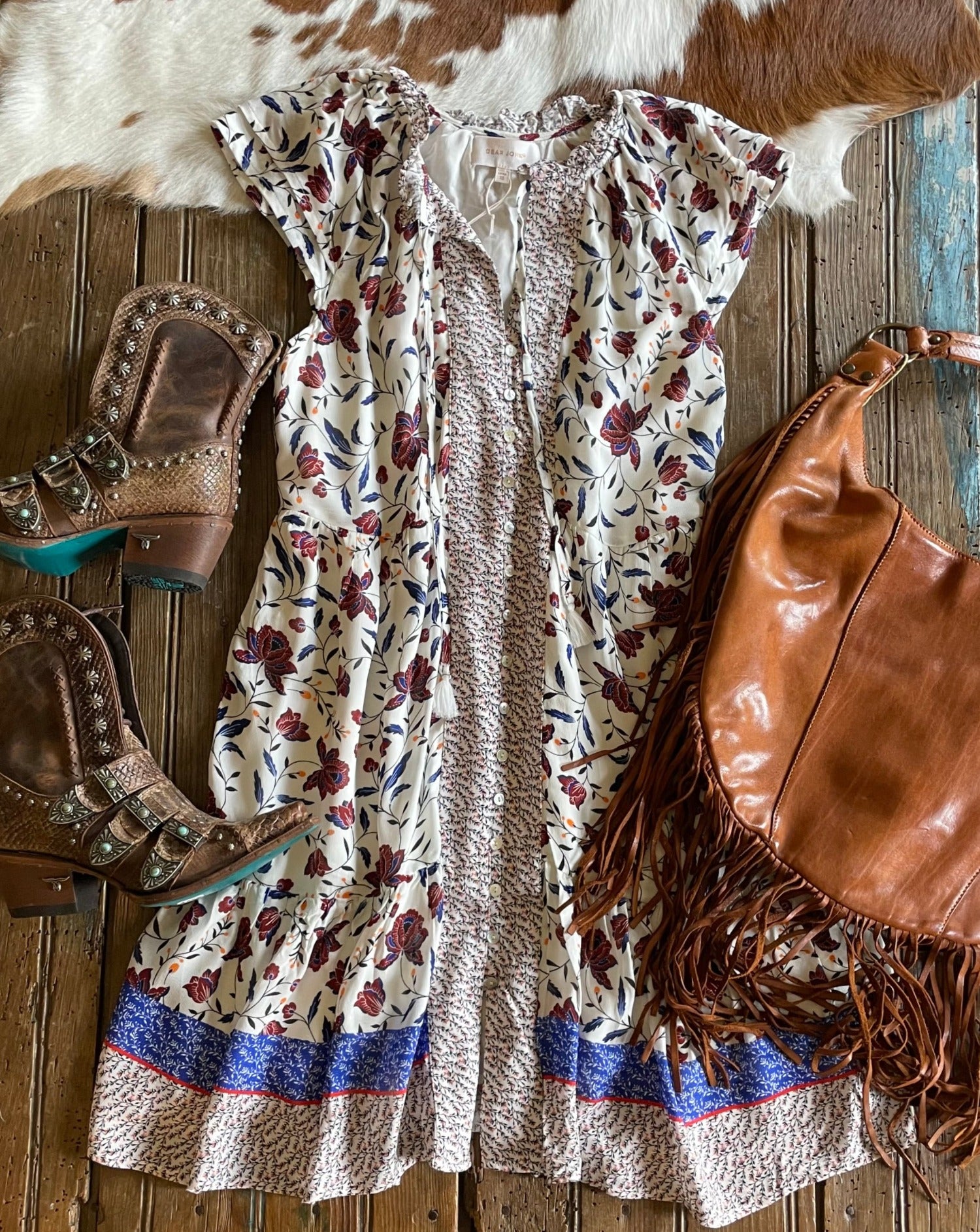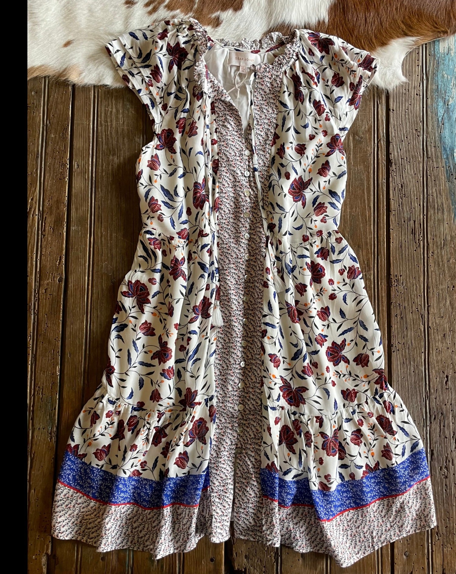 Introducing the Xavia Dress - perfect for any occasion. This 100% rayon dress features a stylish floral print, V-neck with tie, flutter sleeves and a button down front. The knee length skirt is fully lined for a comfortable fit. Elevate your look with this classy dress.